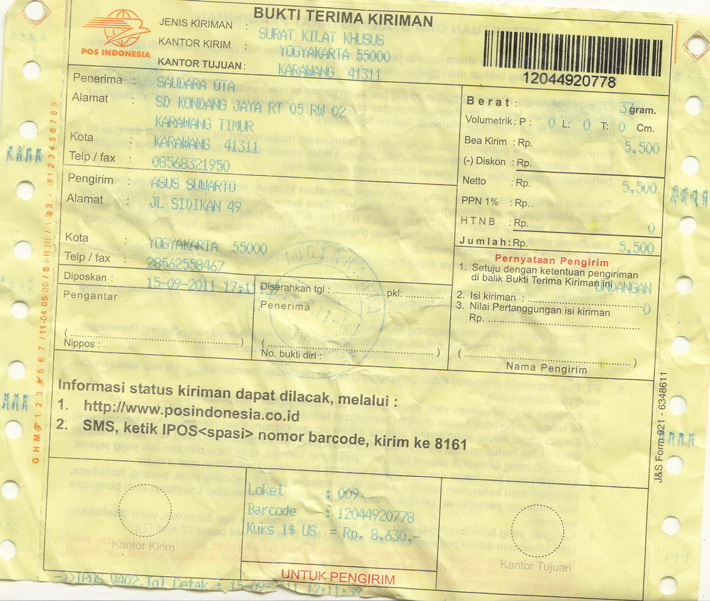 Info: barang sudah di kirim tanggal 14/11/2011,. Trims atas kepercayaannya.
