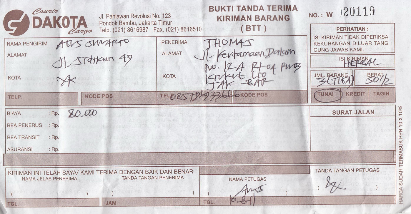 Resi Kirim Naufal Merauke - 23 Desember 2011 ( Susulan -1 )