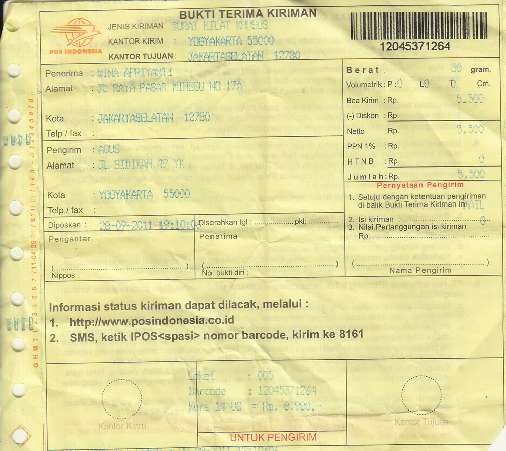 Resi Kirim Naufal Merauke - 23 Desember 2011 ( Susulan -2 )